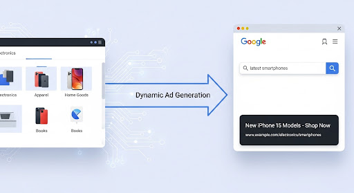 La principal diferencia con los anuncios de búsqueda tradicionales es que los DSA no usan palabras clave. En su lugar, el contenido de tu sitio web es el que determina cuándo se muestra un anuncio. Esto te permite capturar búsquedas de "cola larga" que a menudo son difíciles de prever y gestionar de forma manual.