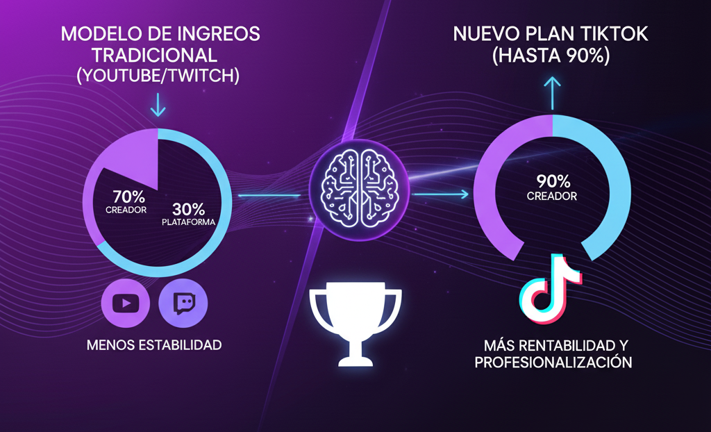 Al combinar la eficiencia de la producción (con IA) con un modelo de rentabilidad superior (con el 90%), TikTok no solo está reteniendo a sus creadores, sino que está lanzando una ofensiva directa para robarle el talento a sus competidores.